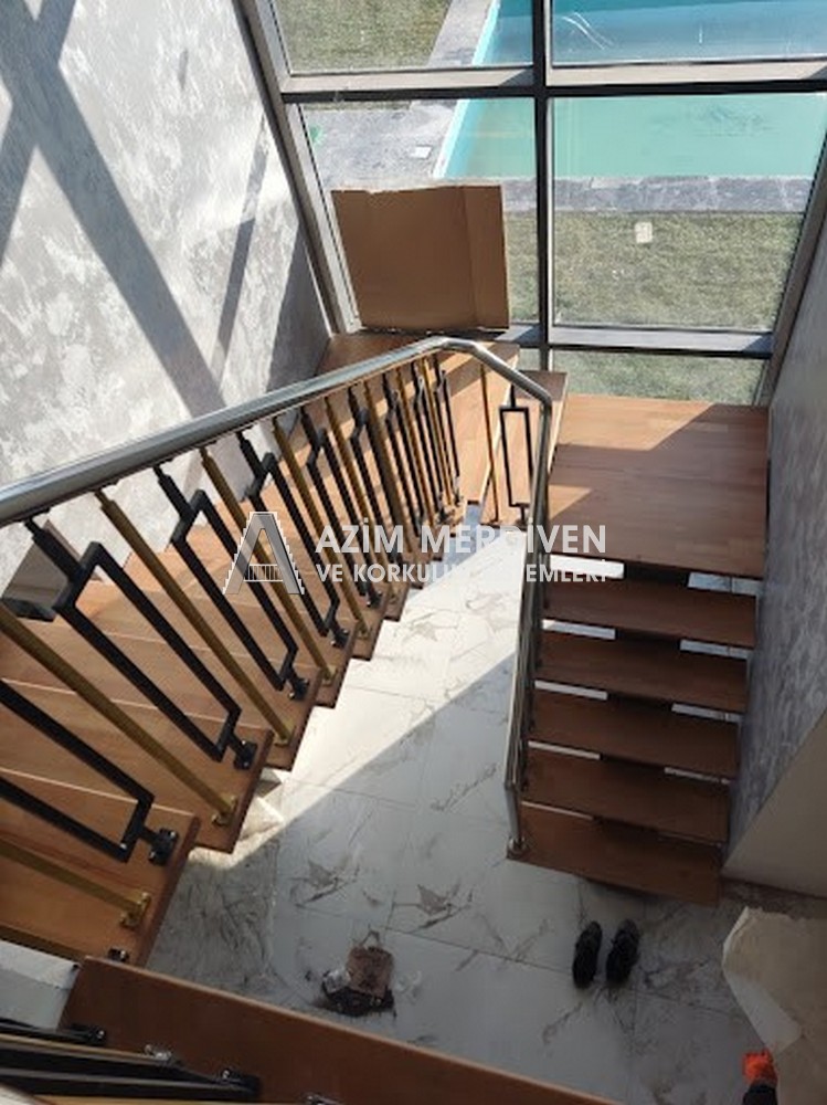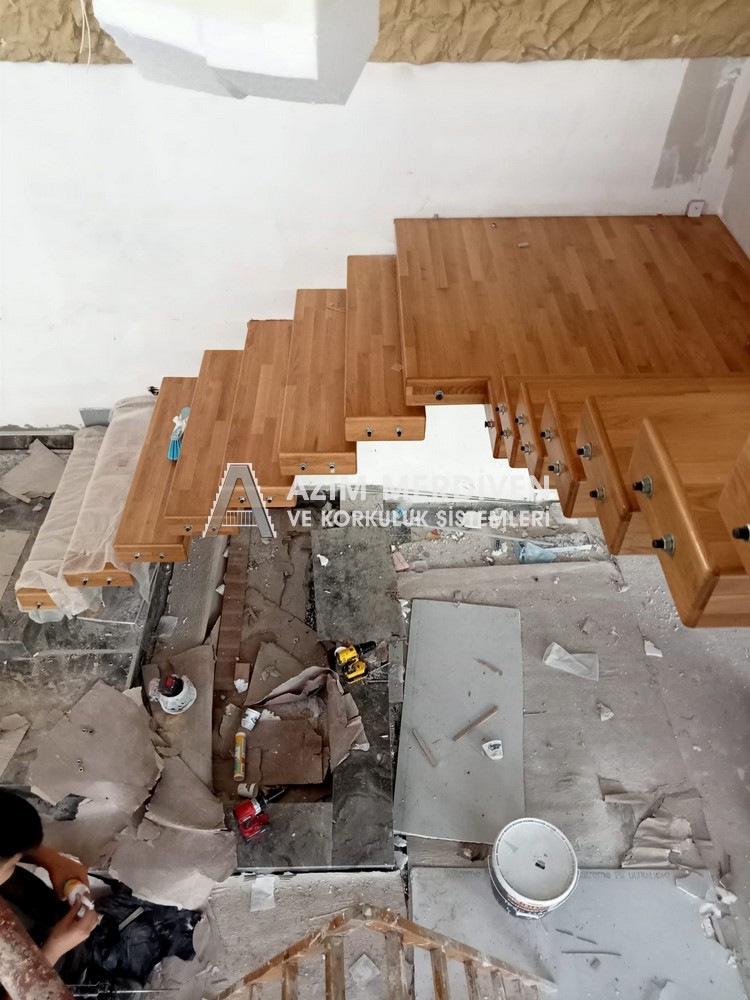 Ahşap merdivenler çoğunlukla iç mekanlarda kullanılır. Merdiven yapımında kayın, meşe gibi sert ve sağlam ağaçların kullanılması gerekir. Ahşabın direncini arttırmak için bir kaç katını birbirine yapıştırmak yani lamine etmek gerekir. Ahşap merdivenler yoğun bakım gerektirir, titiz kullanmak gereklidir. Bir çok projede kendi kendini taşımaz, altına taşıyıcı kolon koymak gerekebilir. Ahşabı taşıyıcı beton veye çeliğin üzerine basamak olarak kombine etmek hem daha sağlam hemde merdivene sıcaklık ve zerafet katmış olur.
