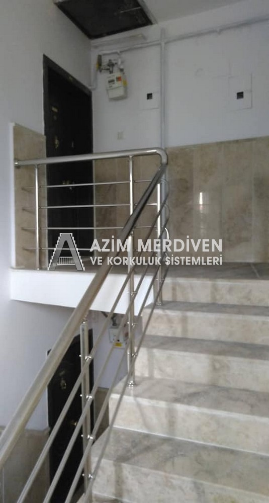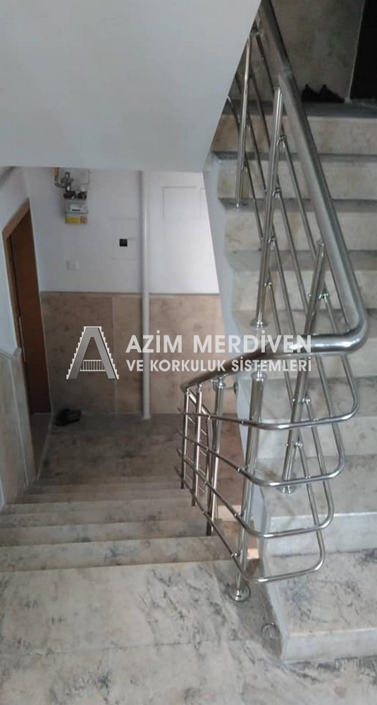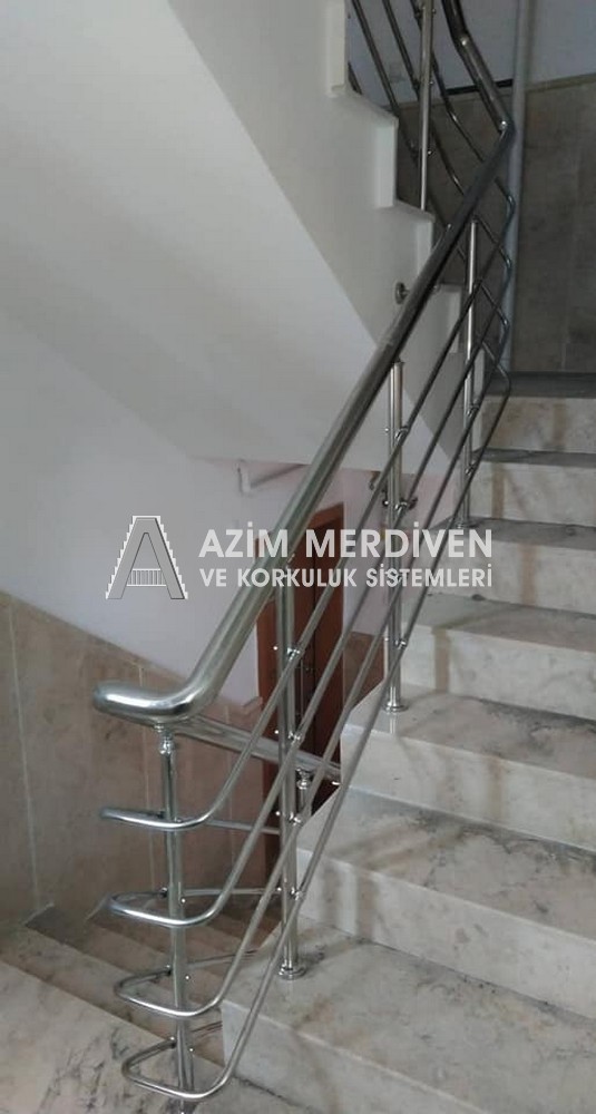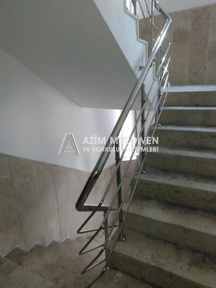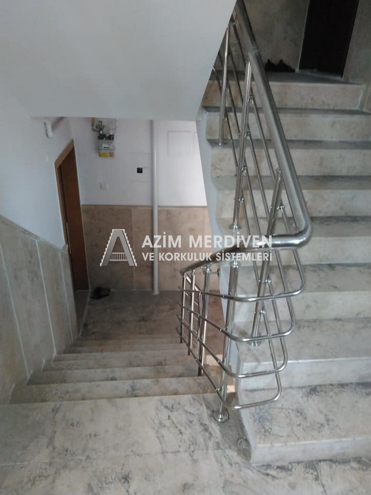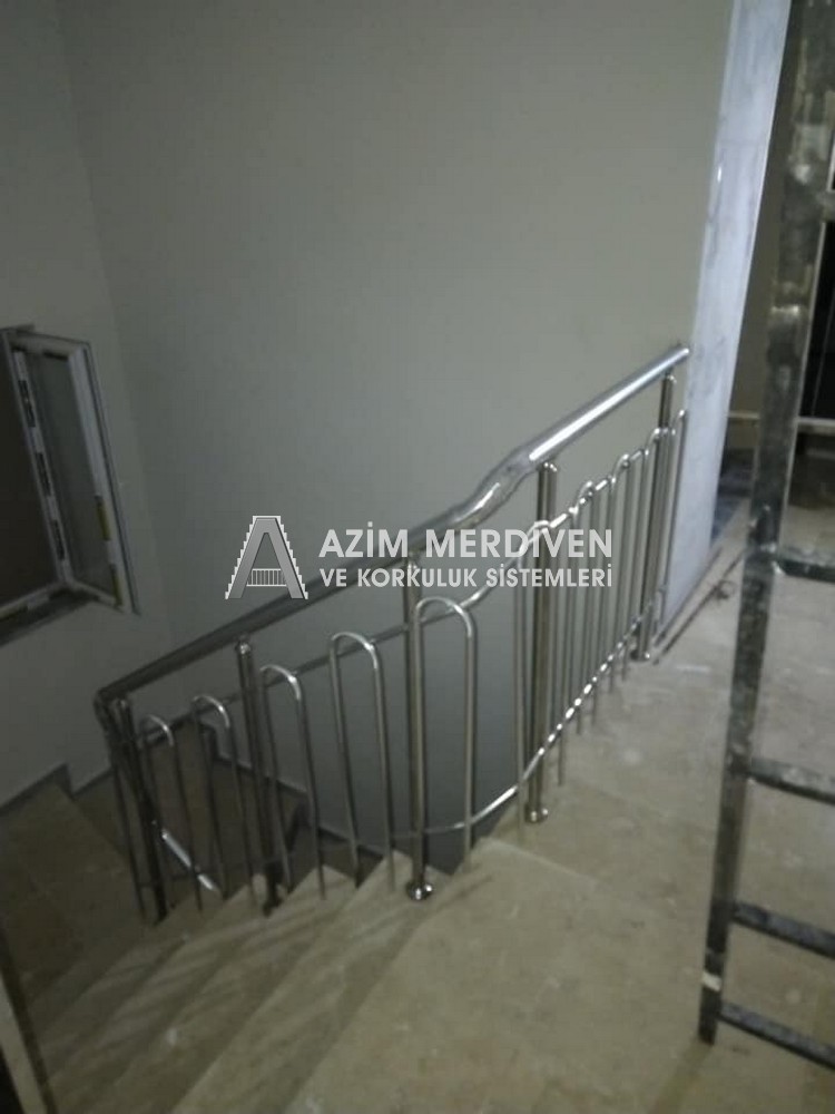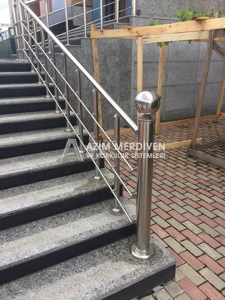 Paslanmaz çelik korkuluklar herhangi bir bakım, onarım, boya, tadilat gerektirmediğinden en çok tercih edilen korkuluklardan biridir. Steril ve çok sağlamdır. Korozyon ve pas yapmaz temizliği kolaydır. Özellikle spiral merdivenlerde ekonomik ve yapımı kolay olduğundan dolayı tercih edilir. Üzerinde tasarım modelleme yapılıp çeşitlilik kazandırılabilir. Camla, ahşapla, çelikle kombine edilip değişik tasarımlar elde edinebilinir.