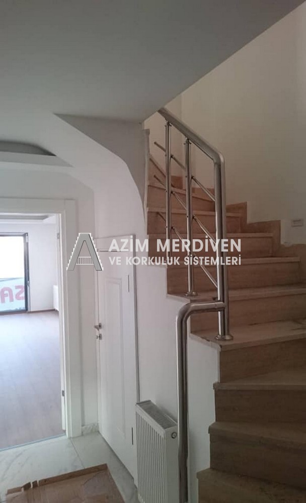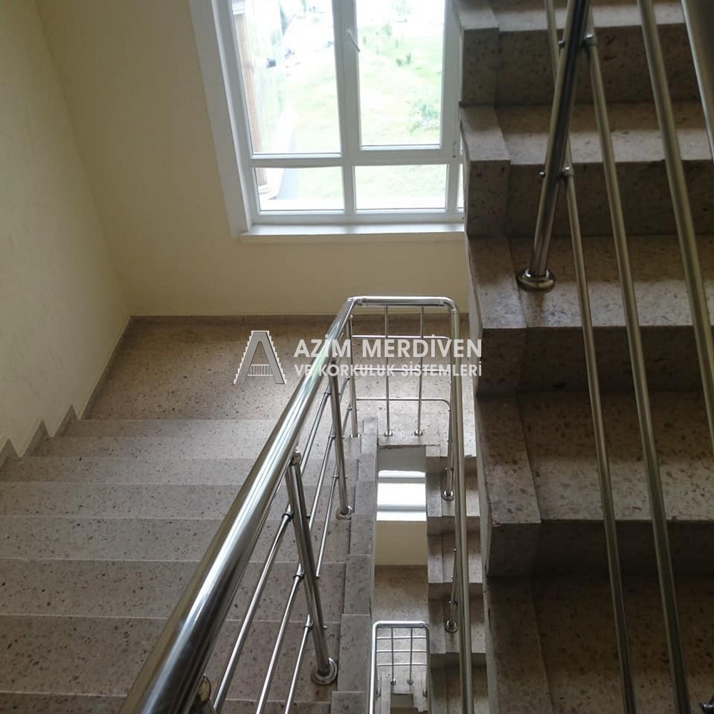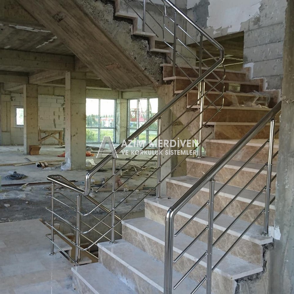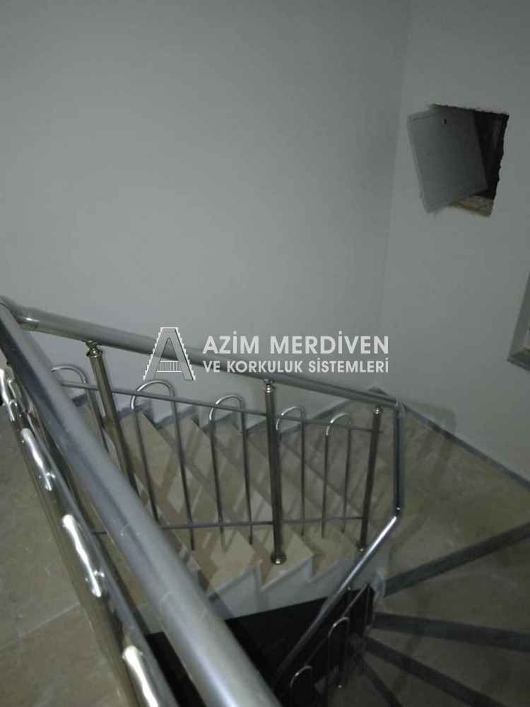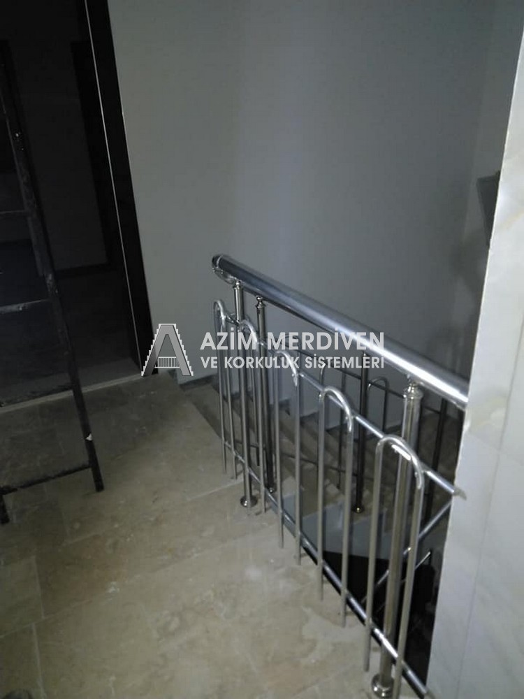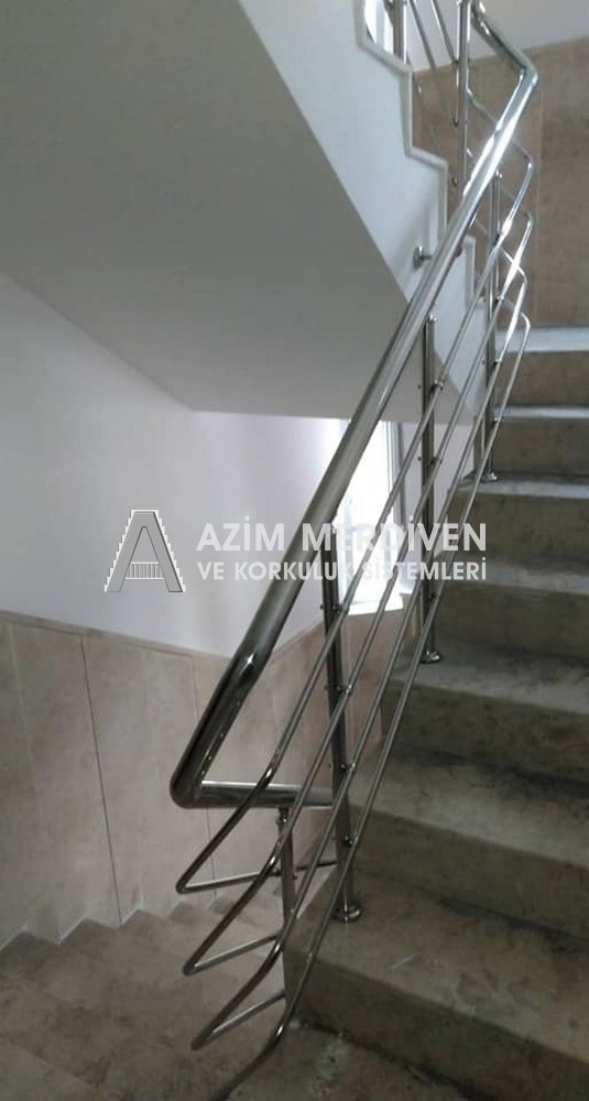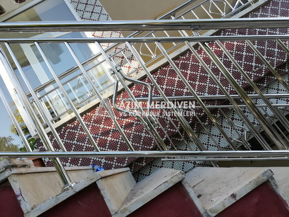 Paslanmaz çelik korkuluklar herhangi bir bakım, onarım, boya, tadilat gerektirmediğinden en çok tercih edilen korkuluklardan biridir. Steril ve çok sağlamdır. Korozyon ve pas yapmaz temizliği kolaydır. Özellikle spiral merdivenlerde ekonomik ve yapımı kolay olduğundan dolayı tercih edilir. Üzerinde tasarım modelleme yapılıp çeşitlilik kazandırılabilir. Camla, ahşapla, çelikle kombine edilip değişik tasarımlar elde edinebilinir.