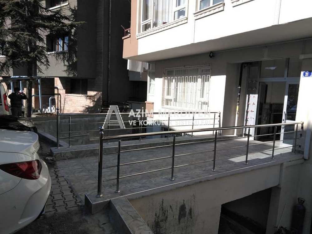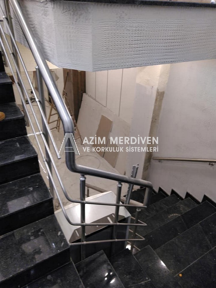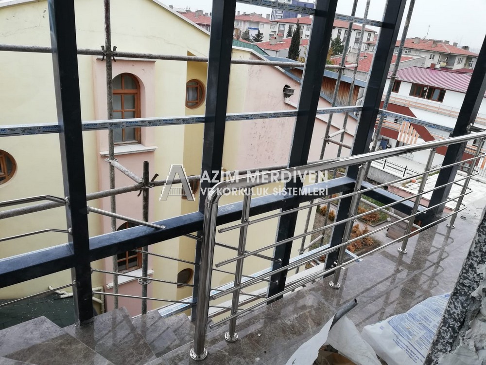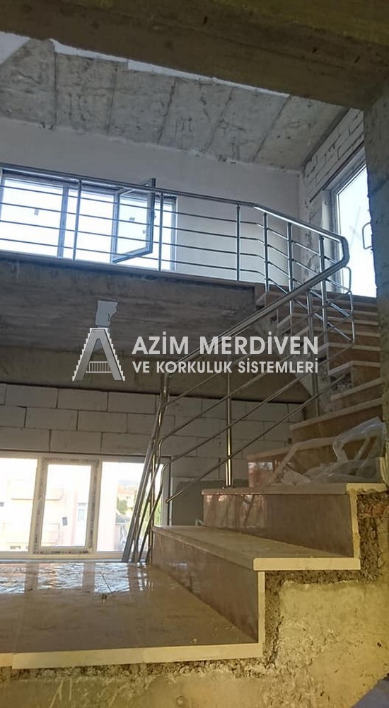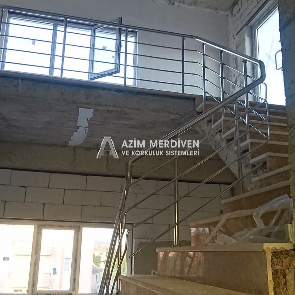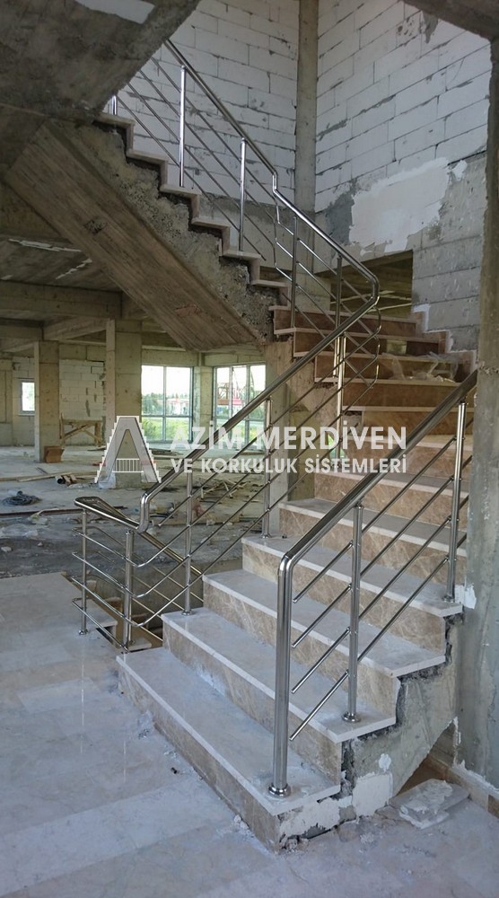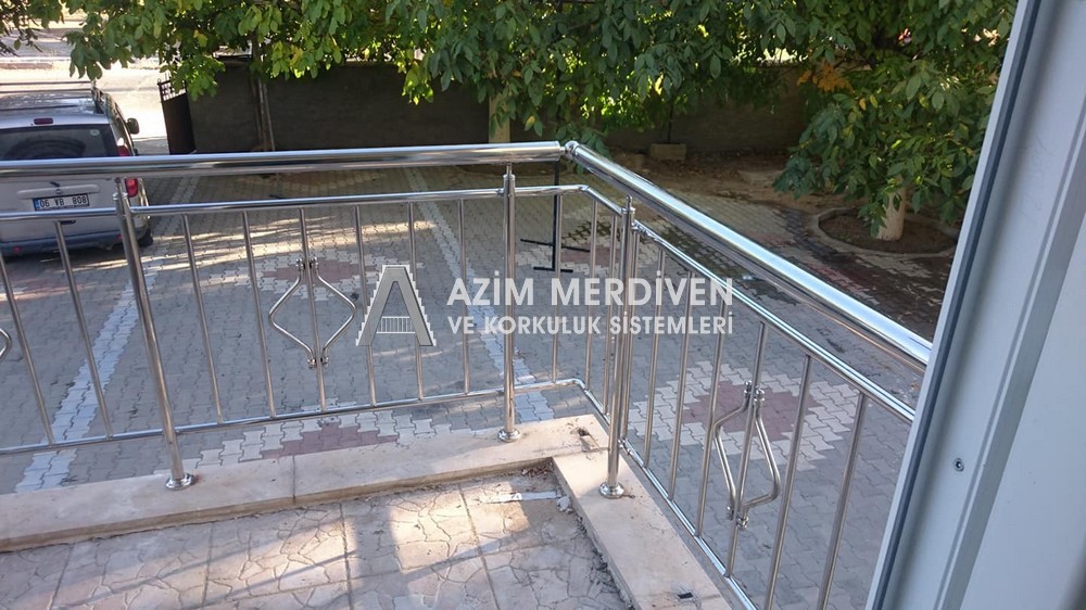 Paslanmaz çelik korkuluklar herhangi bir bakım, onarım, boya, tadilat gerektirmediğinden en çok tercih edilen korkuluklardan biridir. Steril ve çok sağlamdır. Korozyon ve pas yapmaz temizliği kolaydır. Özellikle spiral merdivenlerde ekonomik ve yapımı kolay olduğundan dolayı tercih edilir. Üzerinde tasarım modelleme yapılıp çeşitlilik kazandırılabilir. Camla, ahşapla, çelikle kombine edilip değişik tasarımlar elde edinebilinir.
