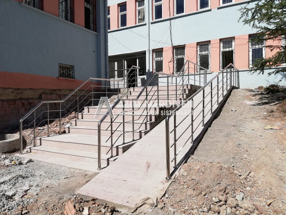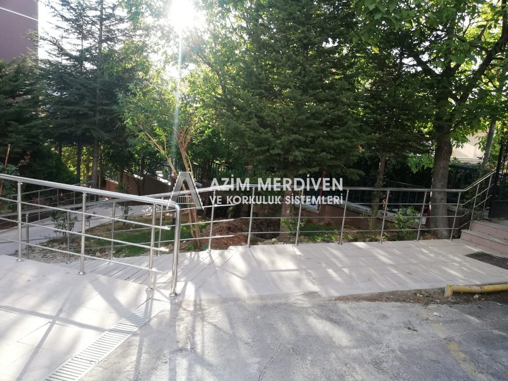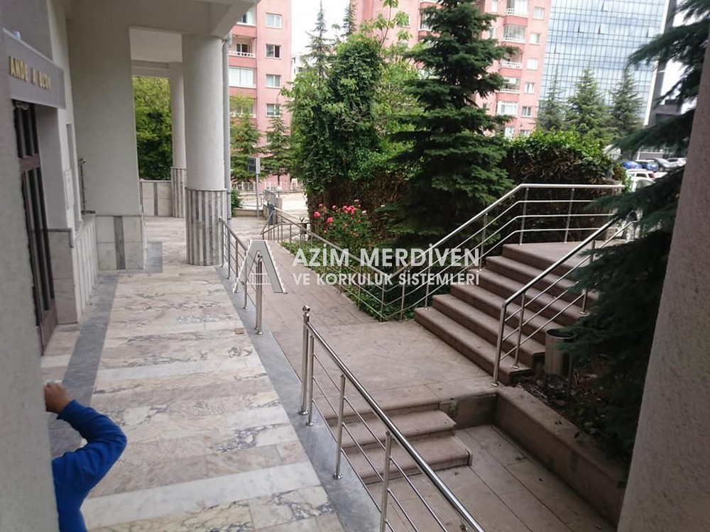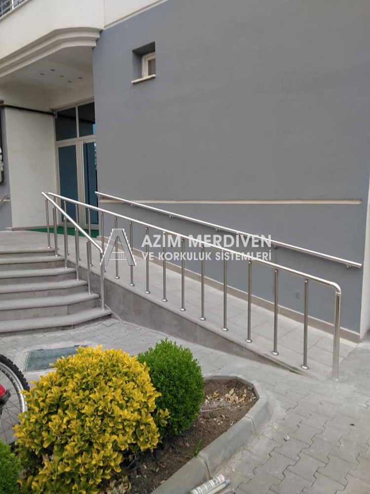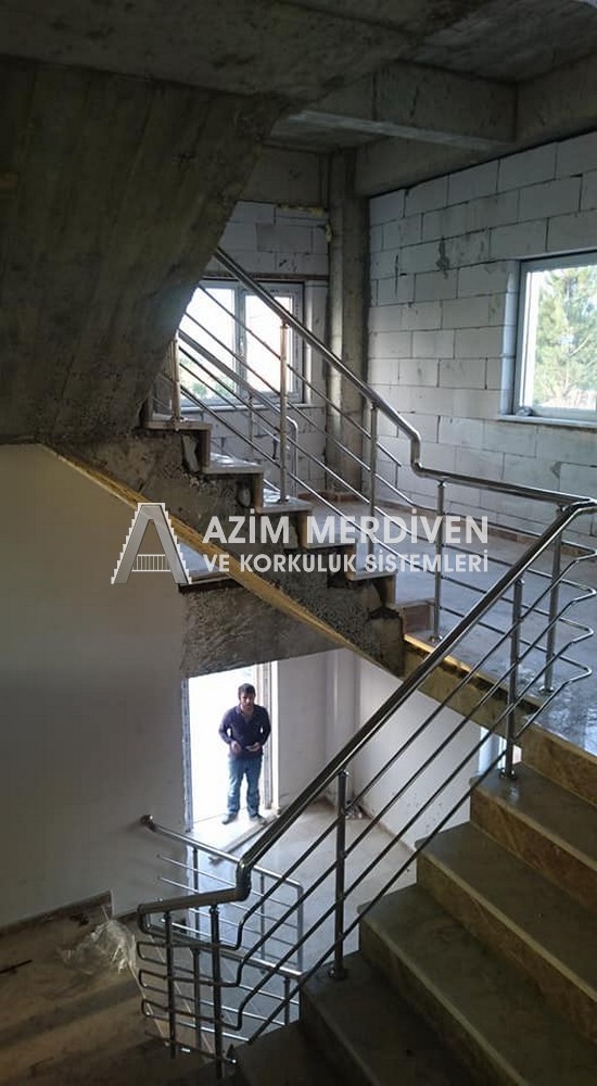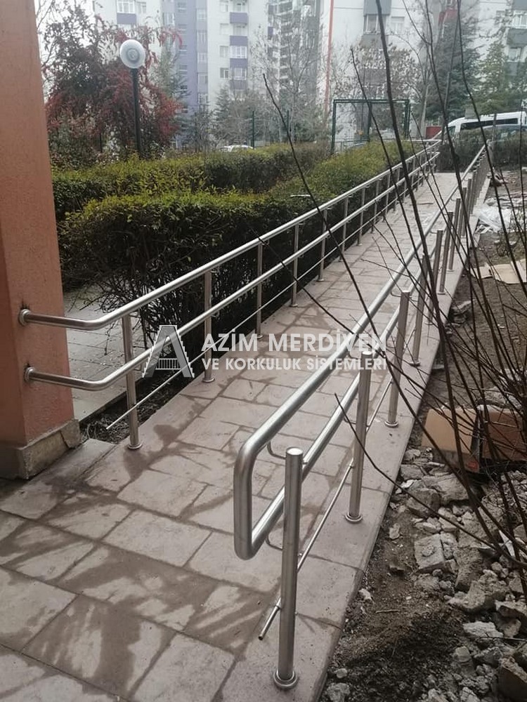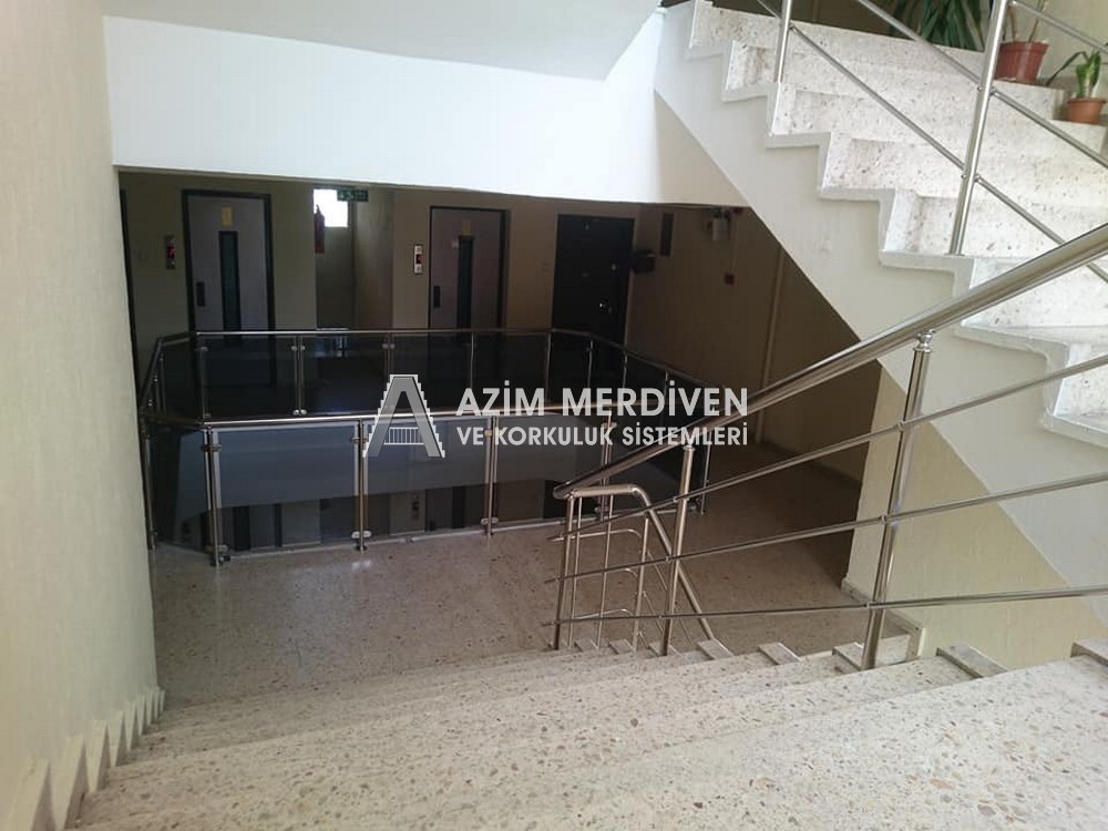 Paslanmaz çelik korkuluklar herhangi bir bakım, onarım, boya, tadilat gerektirmediğinden en çok tercih edilen korkuluklardan biridir. Steril ve çok sağlamdır. Korozyon ve pas yapmaz temizliği kolaydır. Özellikle spiral merdivenlerde ekonomik ve yapımı kolay olduğundan dolayı tercih edilir. Üzerinde tasarım modelleme yapılıp çeşitlilik kazandırılabilir. Camla, ahşapla, çelikle kombine edilip değişik tasarımlar elde edinebilinir.
