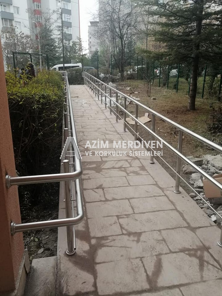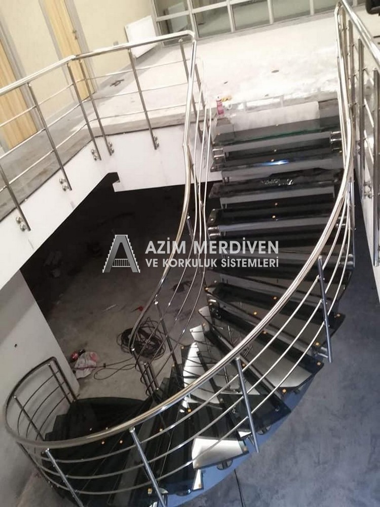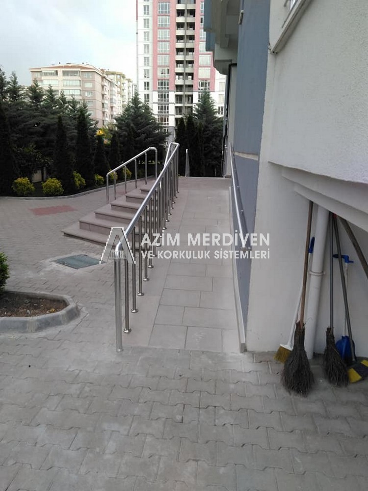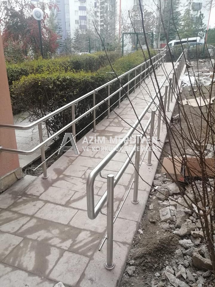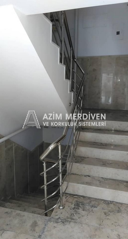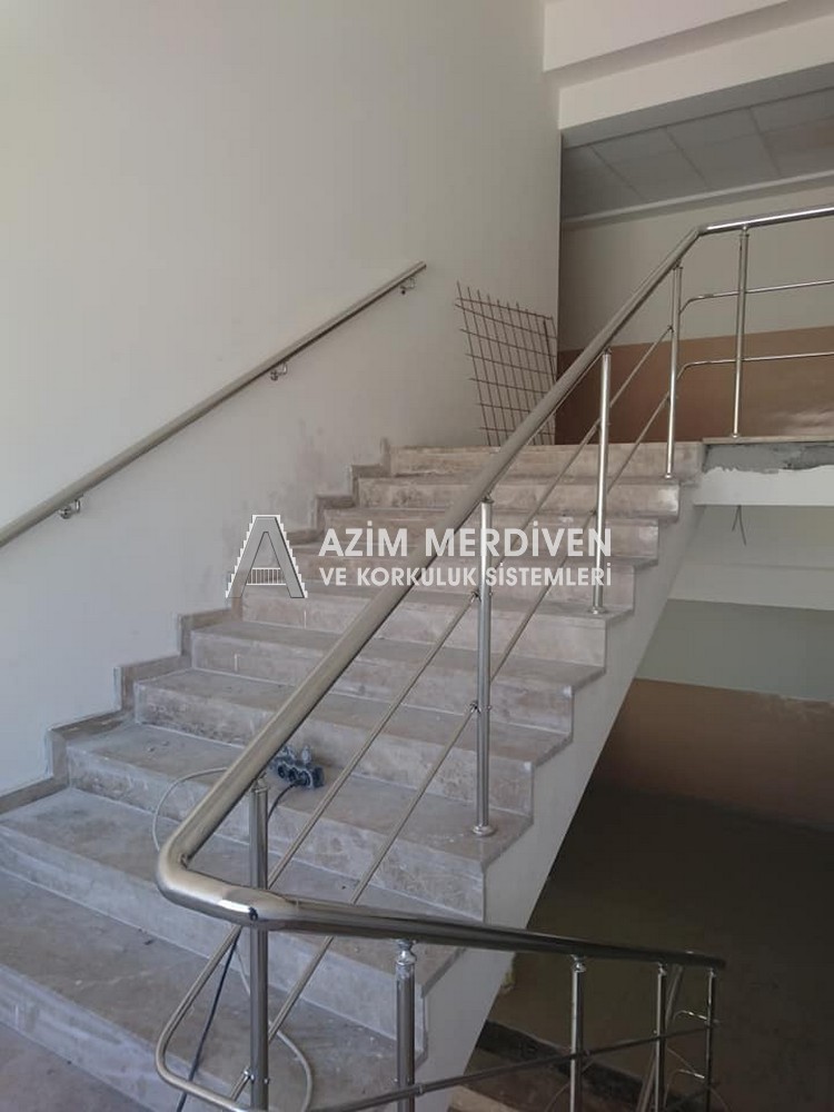 Paslanmaz çelik korkuluklar herhangi bir bakım, onarım, boya, tadilat gerektirmediğinden en çok tercih edilen korkuluklardan biridir. Steril ve çok sağlamdır. Korozyon ve pas yapmaz temizliği kolaydır. Özellikle spiral merdivenlerde ekonomik ve yapımı kolay olduğundan dolayı tercih edilir. Üzerinde tasarım modelleme yapılıp çeşitlilik kazandırılabilir. Camla, ahşapla, çelikle kombine edilip değişik tasarımlar elde edinebilinir.